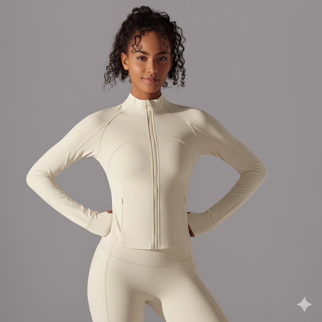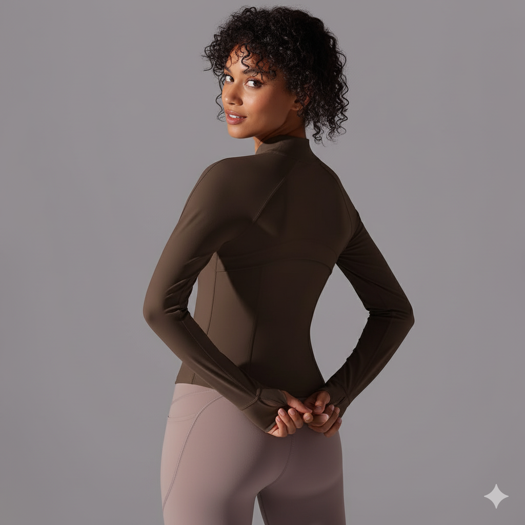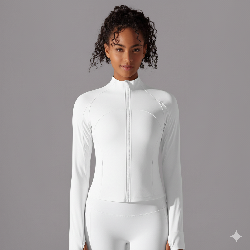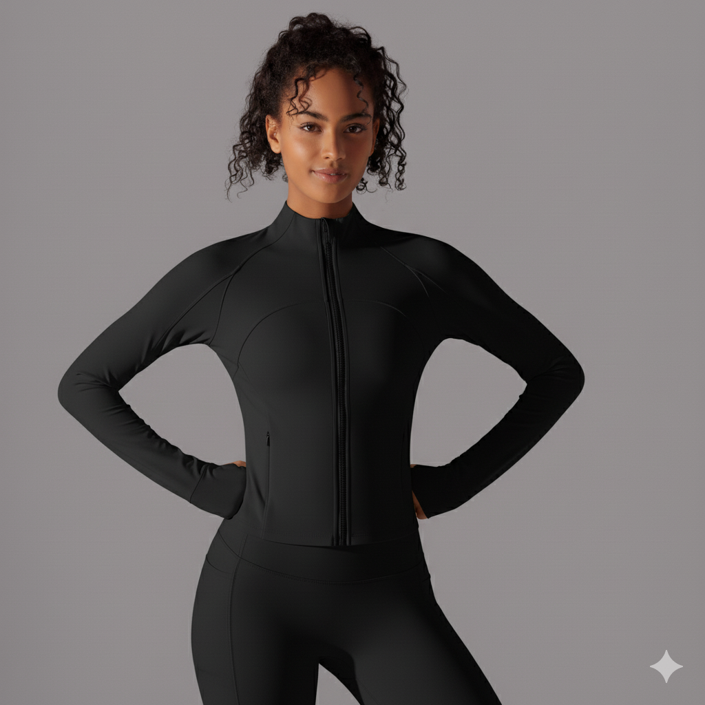A sleek, fitted zip-up jacket designed to flatter your silhouette. Lightweight, stretchy, and breathable, it's perfect for training or layering on cold days.